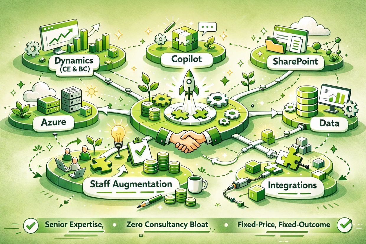 Dynamics (CE & BC), Copilot, Powerplatform, Sharepoint, Azure, Data (Fabric, PowerBI, SQL), Staff Augmentation